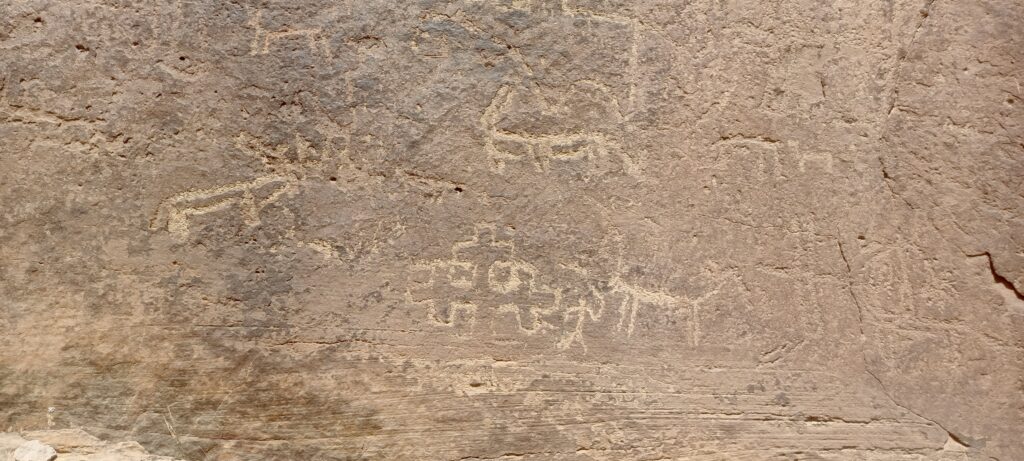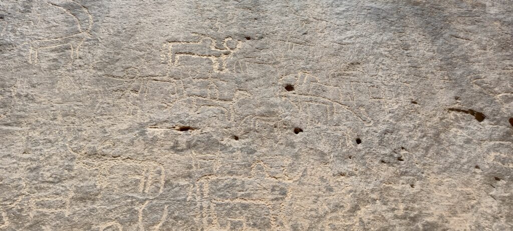 These petroglyphs are not as large as the famous Dabous Giraffe Petroglyphs of Africa, yet they are equally significant. Notably, carvings of bulls and horse riders strongly resemble those of the Indus Valley Civilization (Mohenjo-daro).https://en.m.wikipedia.org/wiki/Mohenjo-daro