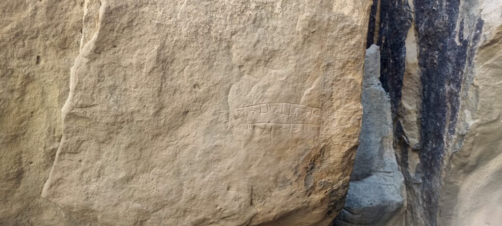 Nearby caves also contain inscriptions in Brahmi and Devanagari scripts, indicating cultural layers from prehistoric to medieval times.