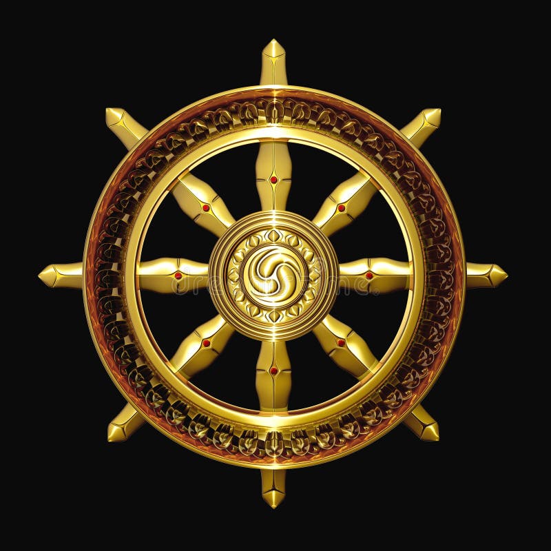 Hand with wheel symbol of Jain Vow of Ahimsa, Jain Prateek Chihna. Vector dharmachakra or wheel of dharma sign Hinduism, Jainism, Buddhism religion icon